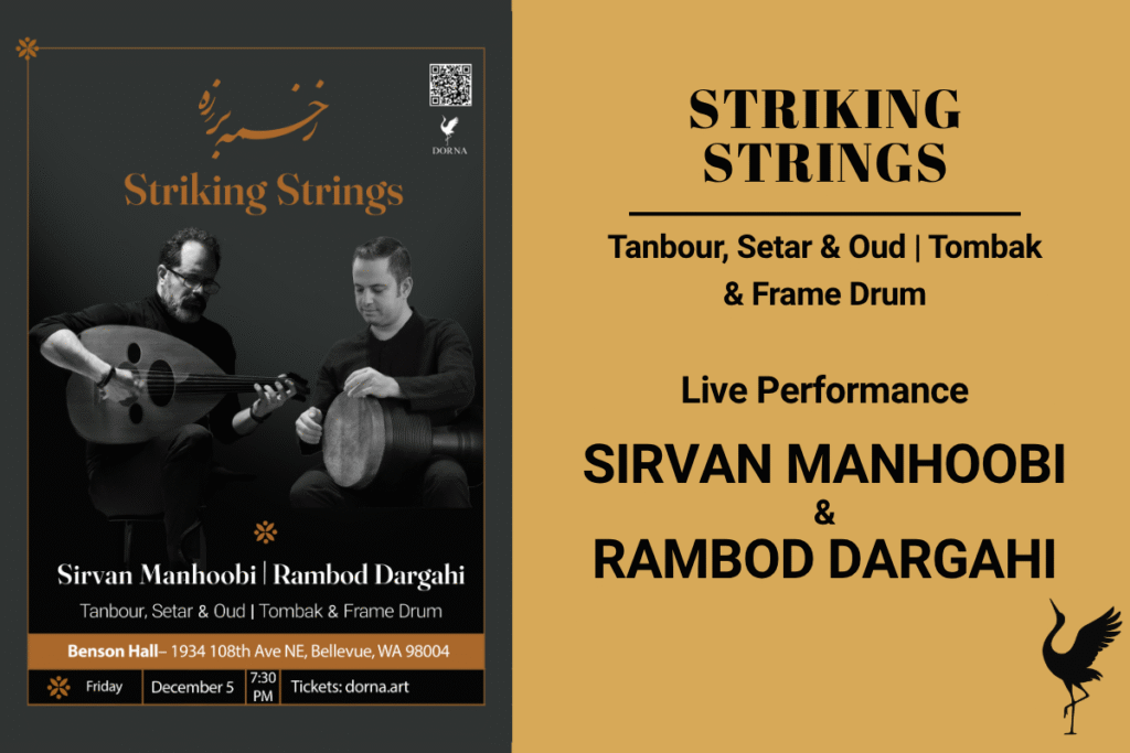 Striking Strings is a captivating performance by Iranian virtuoso Sirvan Manhoobi, featuring the tanbour, setar, and oud. Blending Persian, Kurdish, and Iranian folk roots with improvisation and original